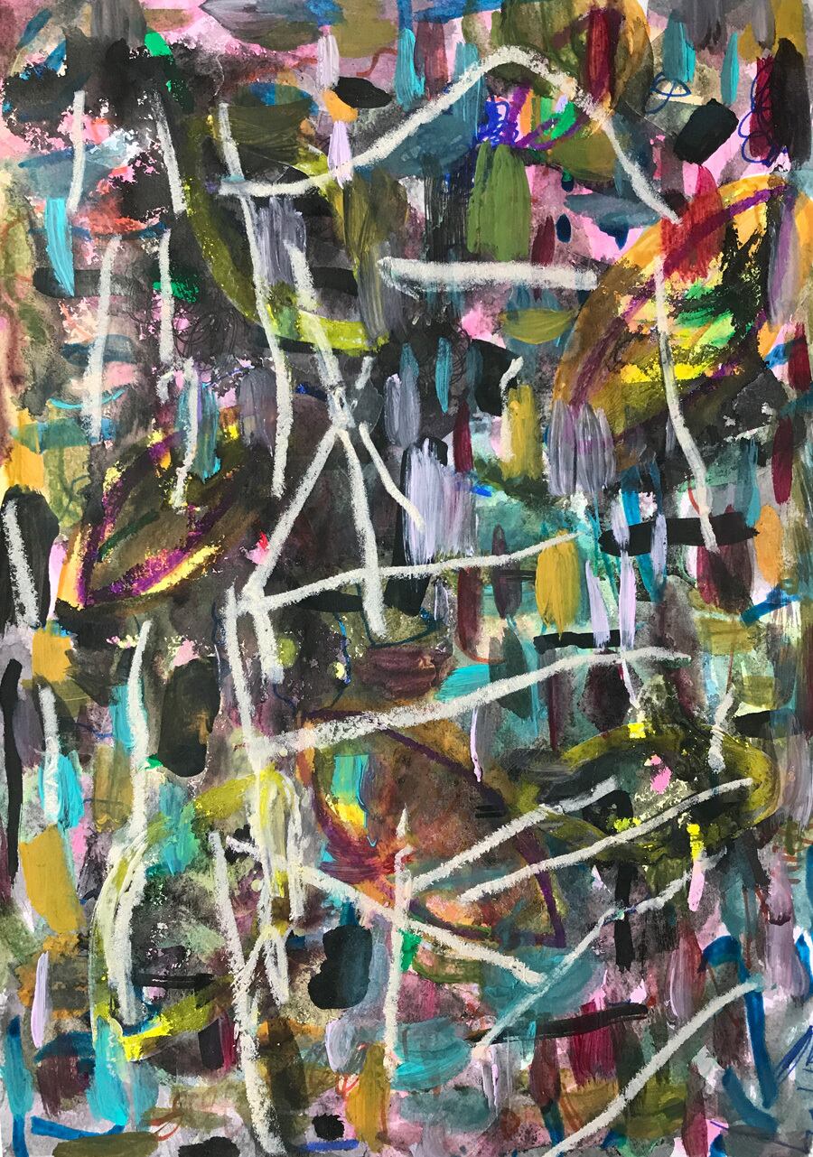 ・アクリル絵具、墨汁、クレヨン、ペンを使用し画用紙に描いております。